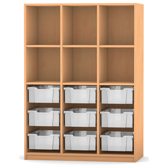 Mittelhohes Regal, 143,9 x 108,5 x 48 cm, mit 9 Boxen und 6 Fächern