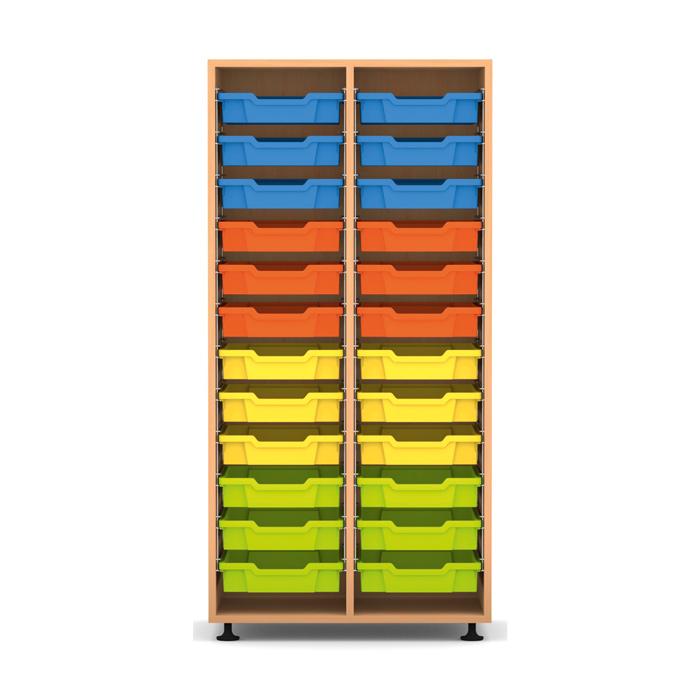 Schafft Raum – mit den Gratnells-Boxen wird Flexeo® zu Flexeo® PRO. Aus diesen mittelhohen Regalen wird dank der 8 mm starken Sichtrückwand auch gerne mal ein Raumteiler. Teilen Sie beispielsweise Arbeitsecken oder Ruhezonen ab und bringen Sie mit Ihrer individuellen Farbwahl frischen Wind in die neu entstandenen Räume. Die qualitativ hochwertige Melaminharzbeschichtung ist robust und trotzt den jahrelangen schulalltäglichen Belastungen. Abnutzungserscheinungen werden durch die 2 mm ABS-Kante verhindert, denn sie bietet Schutz vor Stößen und Feuchtigkeit. Verschmutzungen wischen Sie einfach feucht ab.