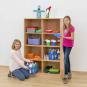 Aufgrund ihrer Höhe und der Sichtrückwand eignen sich die mittelhohen Regale auch hervorragend als Raumteiler. Die besonders stabile Rückwand ist 8 mm stark.