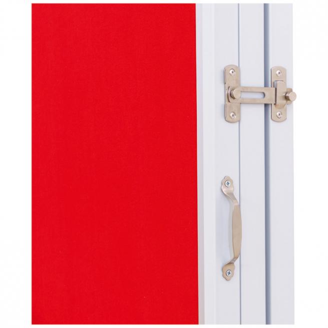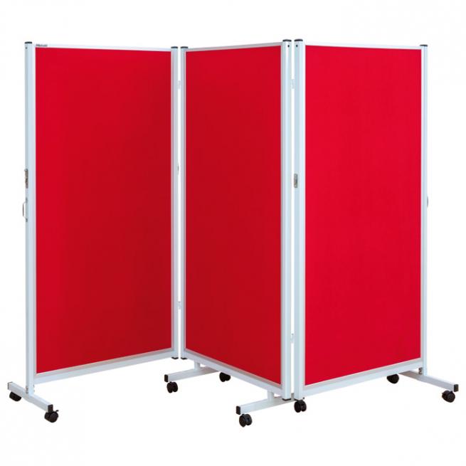 Praktische, fahrbare Präsentationsfläche. Pinnen Sie Schaubilder oder Kunstwerke Ihrer Schüler einfach mit Push-Pins auf die 3 Flächen. Wie einen Paravent nutzen Sie diese Falttafel auch als Sichtschutz oder Raumteiler. Die 3 variablen Flächen sind jeweils eingefasst in Metallrahmen und miteinander verbunden. Die Tafelflächen bestehen aus MDF-Holzplatten mit Styroporschicht und doppelseitigem Filzbezug in drei Farben zur Wahl. Bei Nichtgebrauch einfach zusammenschieben und mit dem Riegel verschließen. Dank der 8 feststellbaren Rollen leicht zu transportieren und standfest aufstellbar.