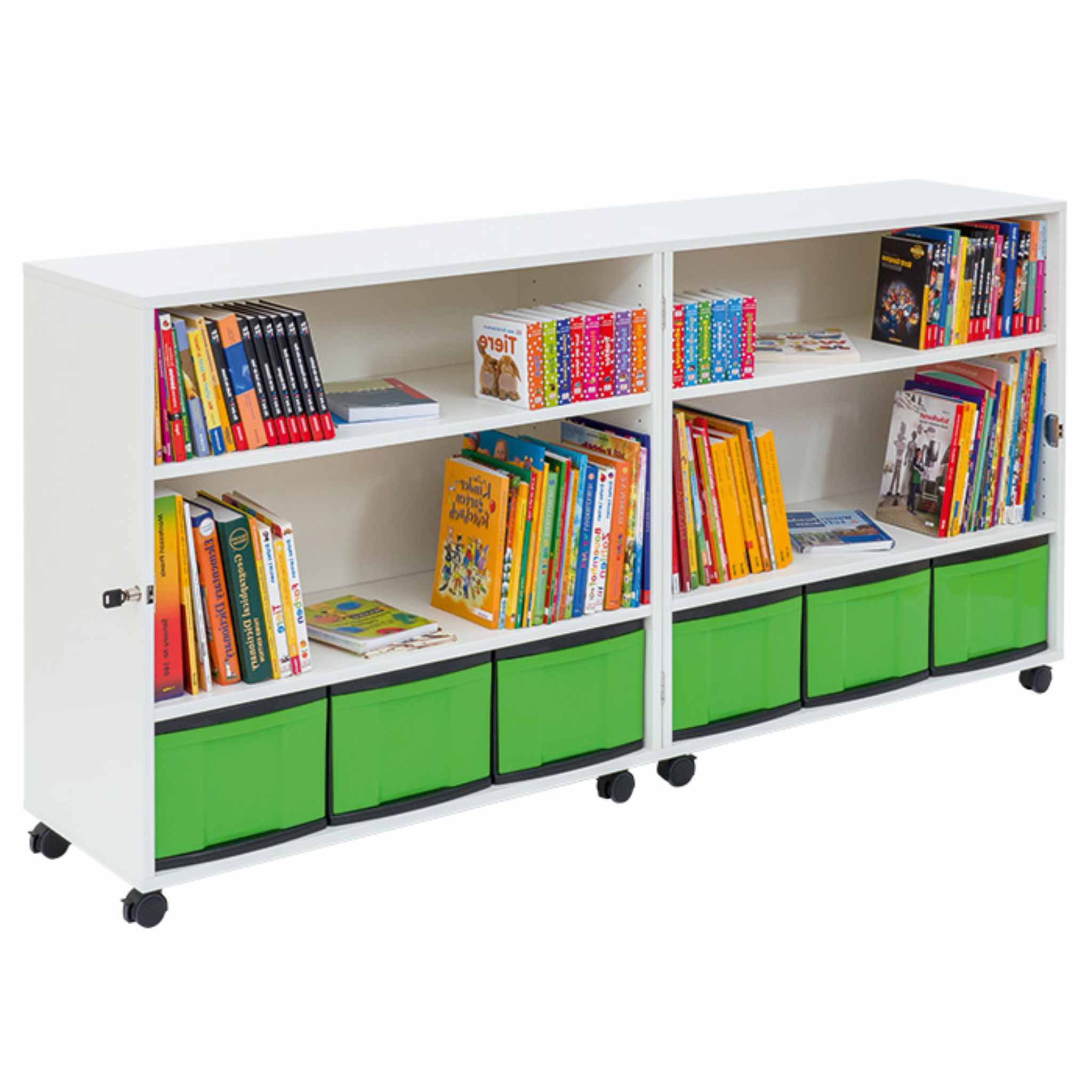 Zusätzlicher Stauraum. Mit den Flexeo-Boxen machen Sie aus der Klapp-Bibliothek ein multifunktionales Möbel. Verstauen Sie in den Kisten beispielsweise Materialien oder Spielzeuge, die Sie in Verbindung mit den Büchern aus der Bibliothek im Sitzkreis vorlesen …