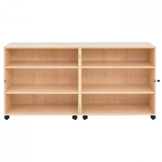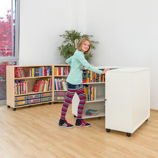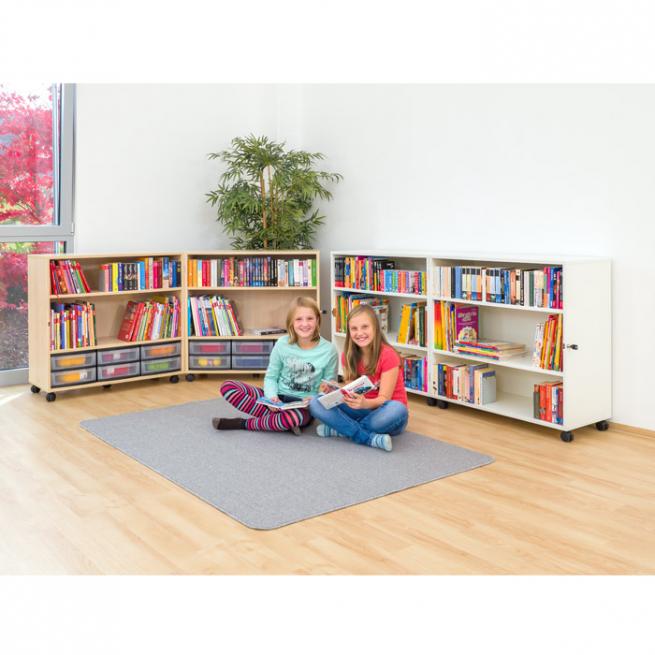 Dank des Klapp-Mobils wird jeder Klassenraum zur Bibliothek. Überall da, wo es gebraucht wird, schieben Sie es einfach hin. Insgesamt 10 leichtläufige Doppel-Lastrollen machen den Klappschrank mobil, 4 davon sind feststellbar (6 ungebremst).