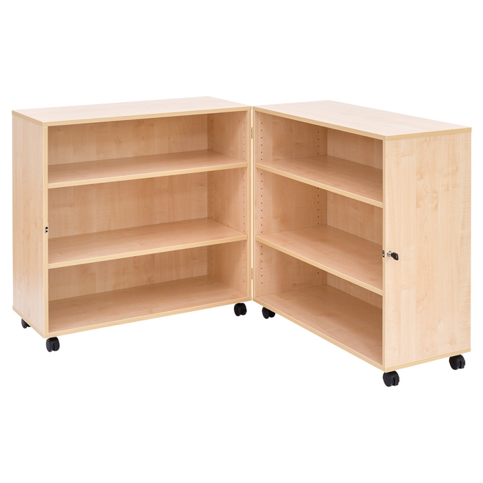 Werden die Bücher und Materialen nicht mehr benötigt, klappen Sie den Schrank einfach zu. Alles steht nun sauber und sicher verwahrt. Zwei Schmetterlingsscharniere ermöglichen den individuellen Klappmechanismus.