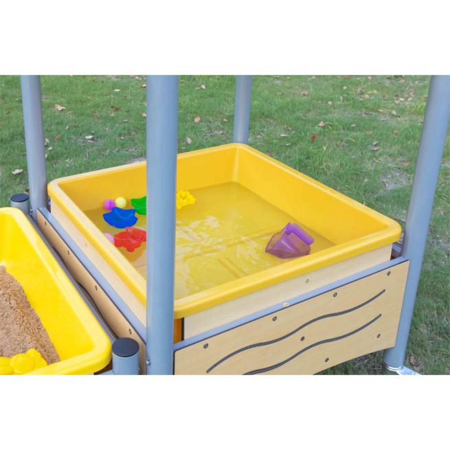 Die Rahmenkonstruktion der Tische ist aus pulverbeschichtetem und galvanisiertem Stahl hergestellt, die Seitenteile aus widerstandsfähigem HPL. Auch die Matschwannen aus robustem Polypropylen bleiben langanhaltend stabil und trotzen der Witterung. Zugleich sind sie äußerst pflegeleicht und lassen sich ganz einfach mit Wasser ausspülen: So ist auch nach den größten Matschabenteuern schnell wieder alles startklar für das nächste Schlammbad!Matschwanne mit Wasserablauf
