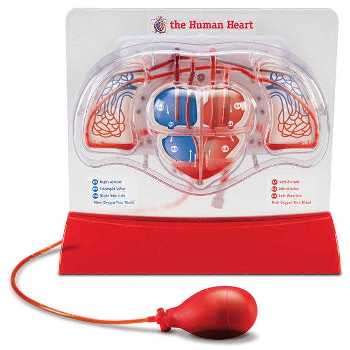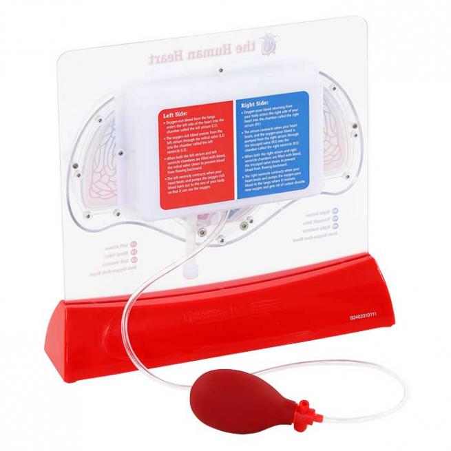 Inklusive Ständer, Handpumpe und rotem Farbpulver zum Mischen von Blut-Imitat. Das Trägermaterial ist teilweise bläulich gefärbt, um den unterschiedlichen Sauerstoffgehalt des Blutes darzustellen.