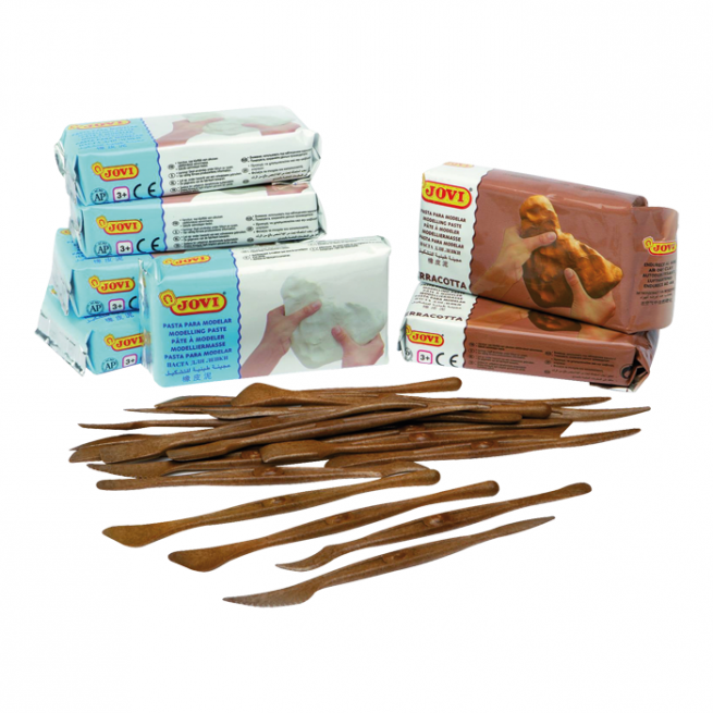 Die praktische Aufbewahrungsbox ist gefüllt mit insgesamt 3,5 kg Modelliermasse und 20 verschiedenen Werkzeugen – damit sind Ihre Schüler bestens ausgestattet, um sich kreativ auszutoben.