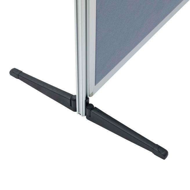 Ganz nach Ihrem Bedarf stellen Sie die Tafeln einzeln oder kombiniert auf. Die verstellbaren Füße der stabilen Aluminium-Ständer rasten im Winkel von 45° ein und ermöglichen den standsicheren exakten Aufbau im rechten Winkel. Höhenverstellbar bis etwa 1,90 m.