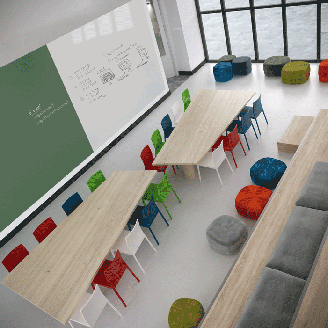 Die koppelbaren, rahmenlosen Paneele bilden zusammen eine nahezu nahtlose (Schreib-) Oberfläche. Jedes Paneel ist 10 mm stark.