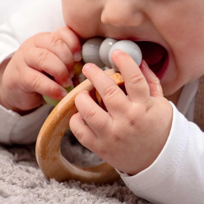 Ihre motorischen Fähigkeiten und die Wahrnehmung entwickeln Kinder mithilfe des Greiflings. Das Motorikspielzeug ist aus massivem, zertifizierten Buchenholz gefertigt und dem jeweiligen Entwicklungsstand angepasst. Babys ab 3 Monaten verbessern mit dem Greifling Malin ihre Reflexe, ihren Tastsinn und die Auge-Hand-Koordination. Zudem bestehen die Perlen aus 100 % lebensmittelechtem, BPA-freien Silikon, sodass die Kleinen das Spielzeug auch in den Mund nehmen können, was Linderung beim Zahnen verschafft.