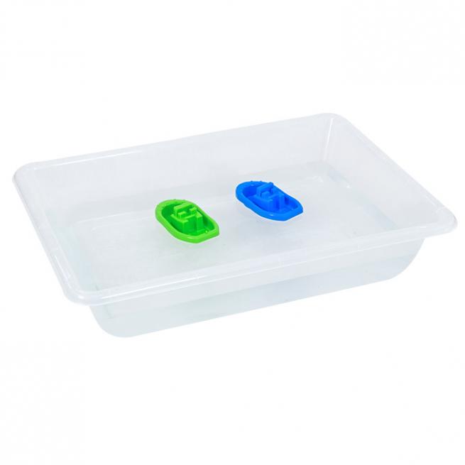 Bei vielen Experimenten mit Wasser sind große Wannen unentbehrliche Helfer. Mit diesen äußerst stabilen Kunststoff-Wannen arbeiten leicht mehrere Kinder gleichzeitig. Ideal für Forscher-Projekte und Spiele, draußen und drinnen.