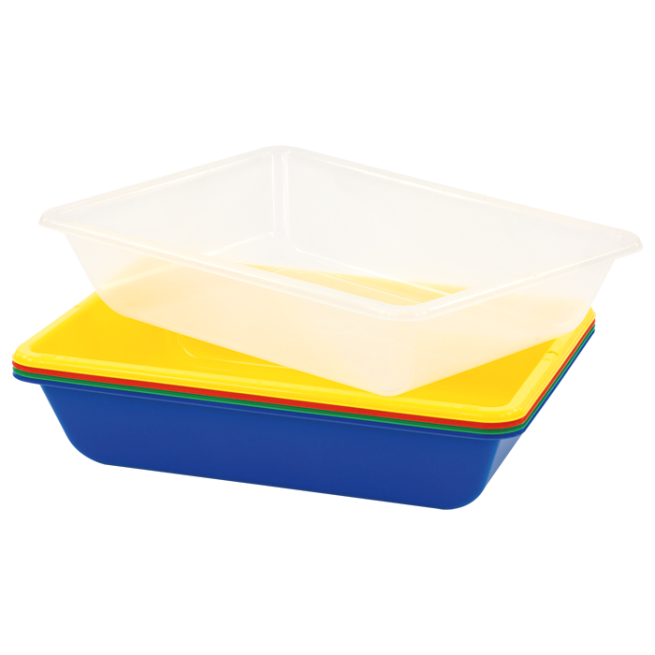 Bei vielen Experimenten mit Wasser sind große Wannen unentbehrliche Helfer. Mit diesen äußerst stabilen Kunststoff-Wannen arbeiten leicht mehrere Kinder gleichzeitig. Ideal für Forscher-Projekte und Spiele, draußen und drinnen.