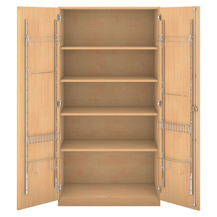 Bestens aufgeräumt und geschützt sind die Schulinstrumente für Ihren Musikunterricht in diesem zweitürigen Schrank mit 4 Böden, von denen Sie 2 verstellen können. Schlägel, Effekt- und Rhythmusinstrumente hängen Sie bequem in die Halterungen an den Türen. Zusätzlichen Stauraum erhalten Sie durch die optionalen flachen oder hohen Boxen in Ihrer Wunschfarbe. Abschließbar durch ein 3-Punkt-Zylinderschloss. Die Schranktiefe von 60 cm erlaubt es, Glockenspiele, Xylophone usw. breitseits einzustellen. Lieferung ohne Instrumente.