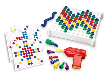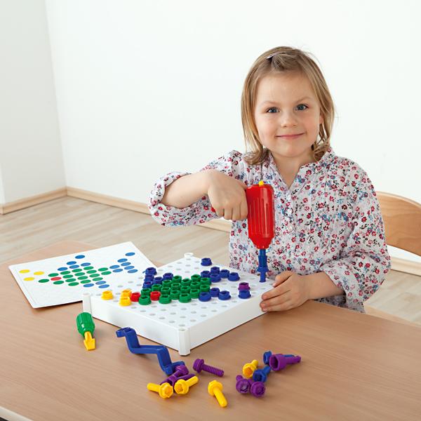 Dieses Schraubendreher-Spiel schult die Motorik der Hand und fördert die spielerische Farbzuordnung.