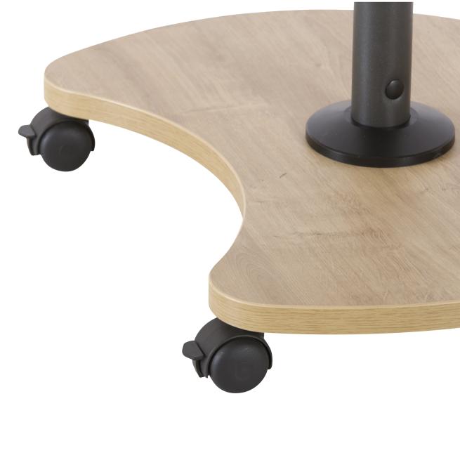 Das robuste Trägermaterial aus melaminbeschichteter Holzfaserplatte in stylisher Eiche-Optik überzeugt mit edler Anmutung und hoher Widerstandsfähigkeit. Der stabile, runde Fuß mit 5 feststellbaren Doppelrollen bietet sicheren Stand und einfaches Verschieben. In der praktischen Ablageschale sind Ihre Marker und Utensilien griffbereit. Das universelle Hakensystem passt zu handelsüblichen Blöcken – ideal für den flexiblen Einsatz in Bildungseinrichtungen. Tipp: Noch mehr Flexibilität erhalten Sie mit dem Natural Flipchart mobil 2 in 1, das Sie zusätzlich kippen und als Tisch nutzen können.