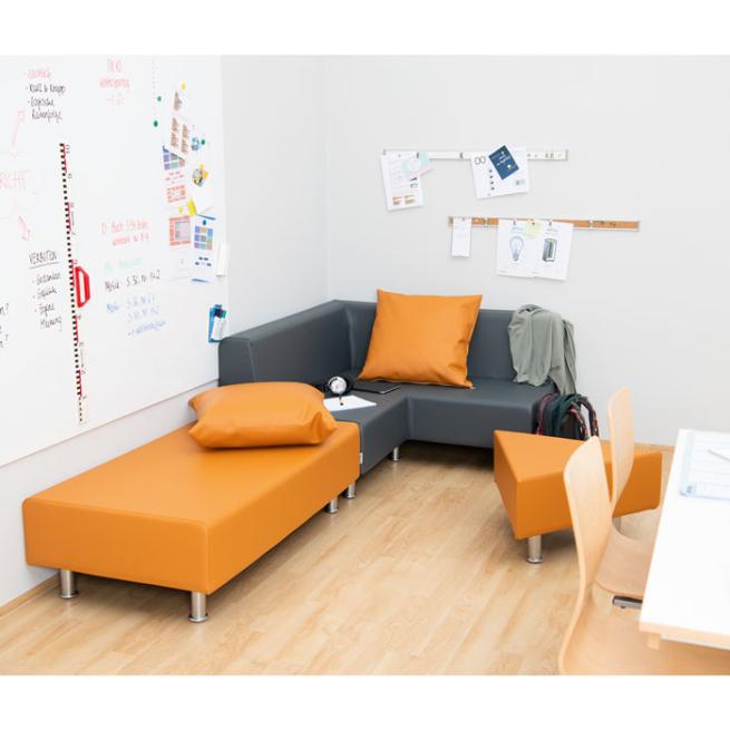 Wohlfühlort Bildungseinrichtungen. Die NEO-Serie ist langlebig, robust und sehr gemütlich – sie ist speziell für den Alltag in Kindergärten und Schulen konzipiert. Entsprechend wählen Sie die Sitzhöhen: beispielsweise 29 cm für Kindergarten bzw. 38 cm für Schulen. Auch der Brandschutz spielt eine sehr wichtige Rolle. Deshalb sind alle NEO-Stoffe schwer entflammbar. Gleiches gilt für den verwendeten Schaumkern, dieser ist schwer entflammbar nach MVSS 302. Durch die verschiedenen Elemente und die große Stoffauswahl stehen Ihnen viele Kombinationsmöglichkeiten zur Verfügung.