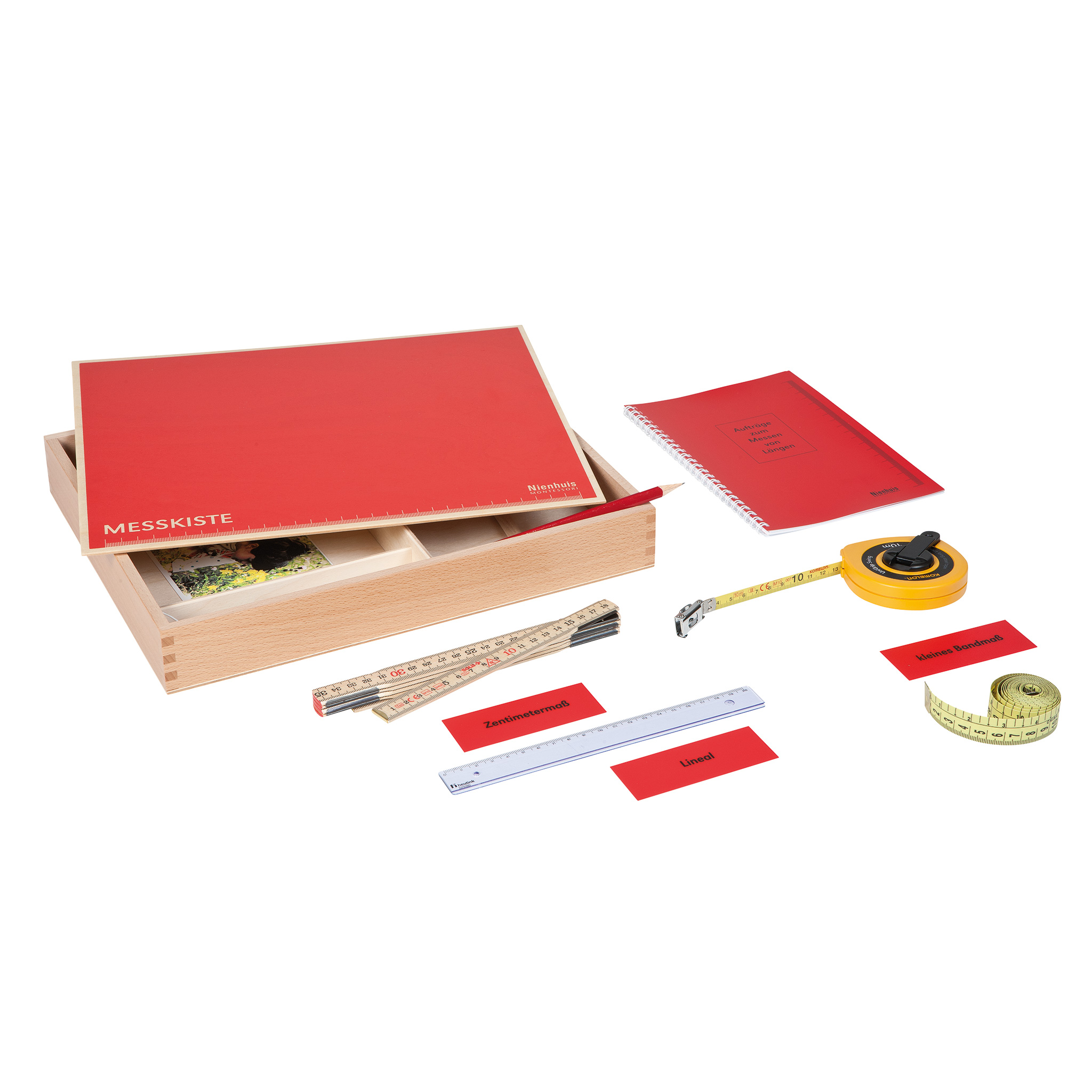 Wie hoch, breit und tief ist eigentlich der Schülertisch im Klassenzimmer und wie lang und breit ist so ein Matheheft? Mithilfe von Gliedermaßstab, Lineal, kleinem und großem Bandmaß vermessen Ihre SuS z.B. Gegenstände in ihrem täglichen Umfeld. Ihre Ergebnisse halten sie im roten Auftragsbuch fest.