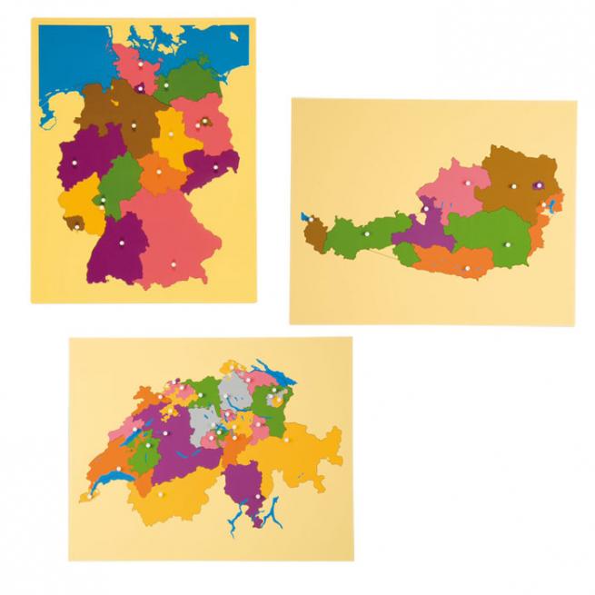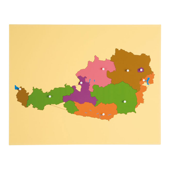 Die 9 Bundesländer Österreichs erkunden Sie mit Ihren Kindern auf der Puzzlekarte. Die weißen Griffpunkte markieren die jeweiligen Hauptstädte der einzelnen Bundesländer. An diesen Griffen setzen die Kinder die einzelnen Puzzleteile in Form jedes Bundeslandes zu Österreich zusammen. Praktischerweise passt jedes Bundesland nur an seinen jeweils dafür vorgefertigten Platz. So begreifen die Kinder sofort, ob das Puzzleteil passt.