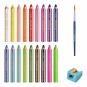 Sie erhalten 18 farbenfrohe Stifte inklusive Spitzer & Pinsel.