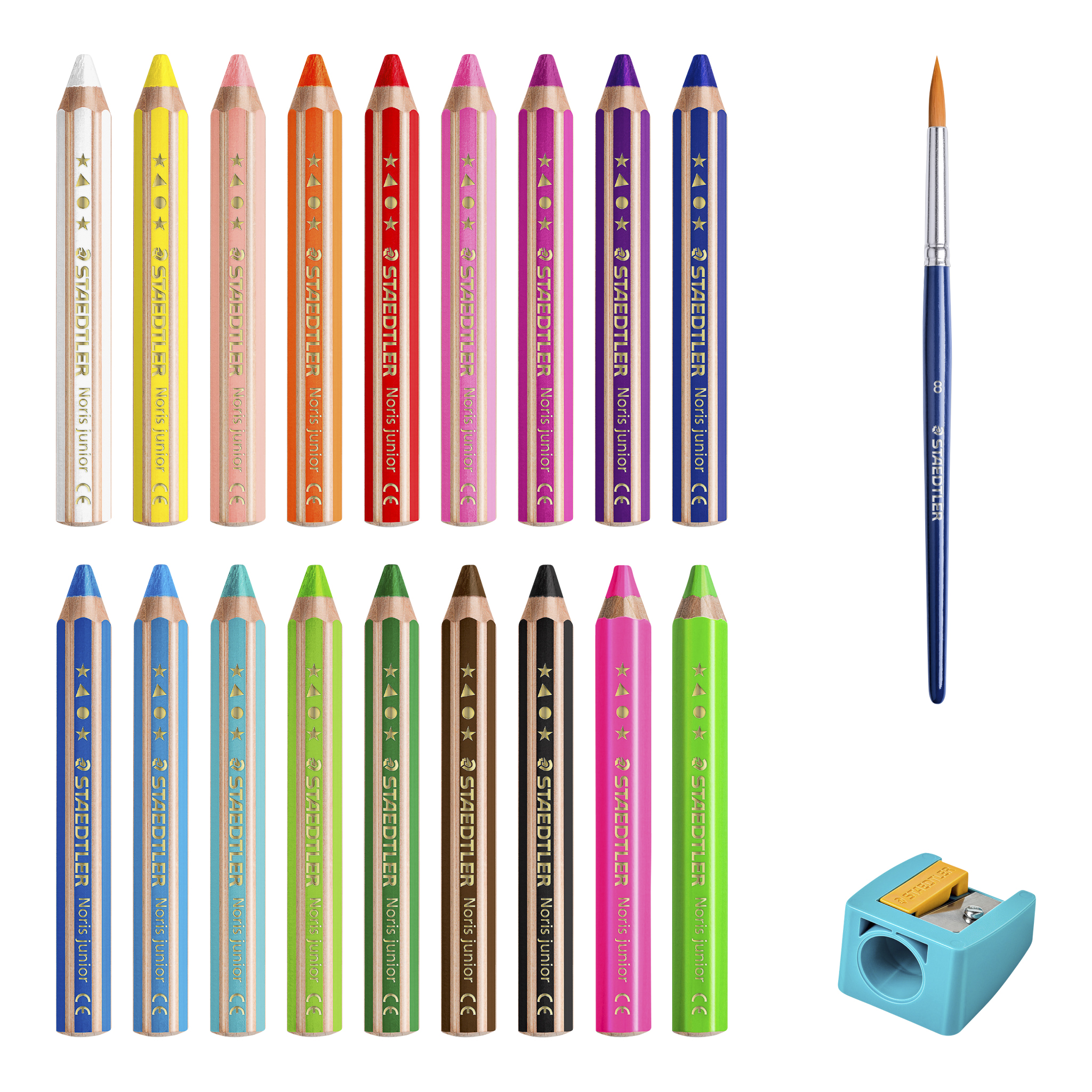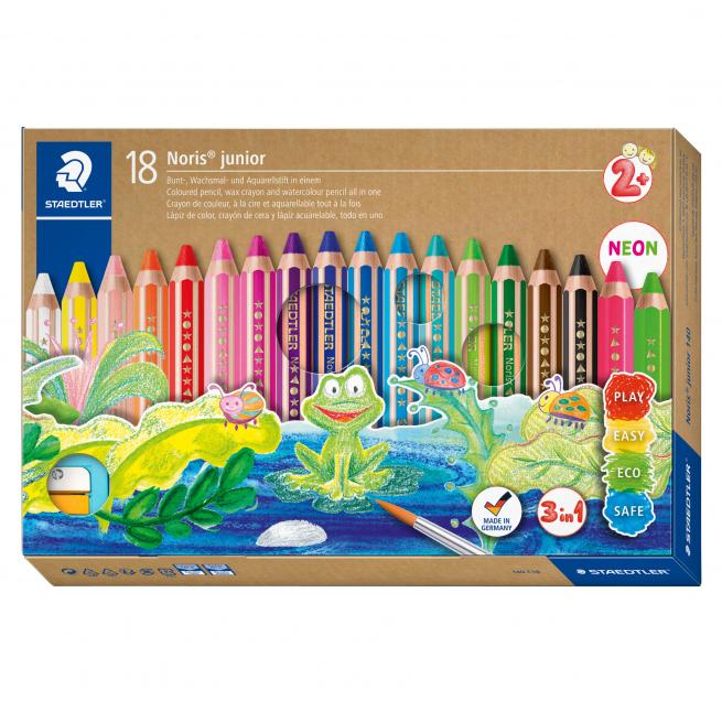 3 in 1: Die Noris junior Buntstifte sind vielseitig einsetzbar. Sie sind Bunt-, Wachsmal- und Aquarellstift in einem. Sie sind vor allem für kleine Kinder ideal dank der kompakten Größe und extradicken Mine (9,5 mm).