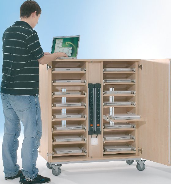 Notebook-Schrank Größe L mit 16 Teleskopauszügen – Ausreichend für 16 Geräte