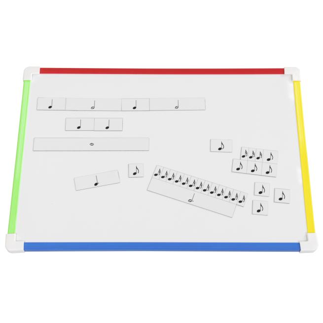 Diese 34 magnetischen Notenkärtchen helfen Ihren Schülern dabei, die Länge eines Tones zu visualisieren. Ob Viertel, Halbe, Ganze oder Achtel – mit diesem Legespiel lernen Ihre Schüler die einzelnen Notenwerte spielend. Auch eine gute Ergänzung z. B. für die Schüler-Notentafeln, bitte separat bestellen Art. 38477