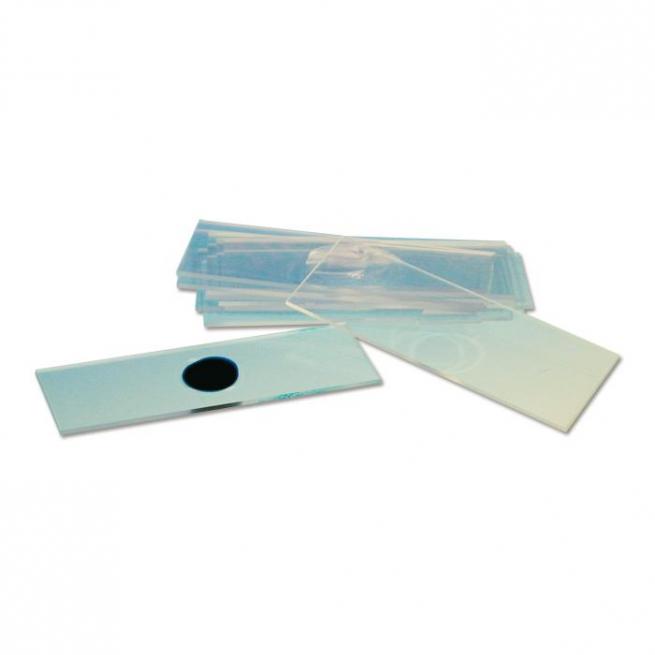 Objektträger aus Glas mit Vertiefungen für Flüssigpräparate, geschliffen