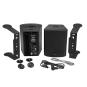Entscheiden Sie sich seelenruhig auch für die ortsfeste Nutzung. Das Boxen-Set ist für die feste Montage vorbereitet und lässt sich kinderleicht über die mitgelieferten Montage-Bügel und Rändelschrauben an Wänden oder anderen geeigneten Raum- und Gebäudebereichen befestigen.