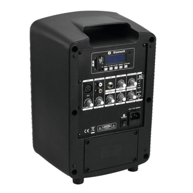 Das WAMS-65BT-Drahtlos-PA-System aus dem Hause Omnitronic ist ein handliches und tragbares Verstärkersystem mit 40 Watt Leistung und effizientem Class-D-Verstärker, das alles bietet, was Sie für den Einsatz vor Ihrer Schulklasse benötigen. Verschiedene Anschluss- und Bedienoptionen sowie die Konnektivität mit USB, SD-Karten und Bluetooth garantieren vielseitige Nutzungsmöglichkeiten und eine stets zuverlässige Verwendung auch unter wechselnden technischen Rahmenbedingungen. Die Stromversorgung erfolgt standardmäßig über Strom-/Netzkabel, das Gerät ist jedoch für den Akkubetrieb vorbereitet und wird vorliegend mit Akku ausgeliefert. Nutzen Sie das WAMS-65BT für eine kabellose Betriebsdauer von bis zu 4 Stunden und setzen Sie es daher sowohl im Innen- als auch im Außenbereich ein, z. B. auf Klassenausflügen. Das WAMS bringt Sie auf Touren!