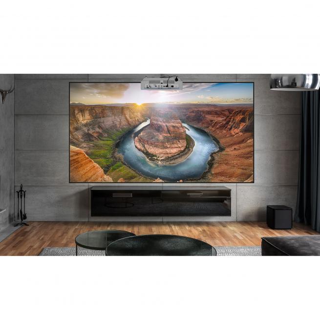 Ausgestattet mit zahlreichen Funktionen verfügt dieser fortschrittliche Laserprojektor über einen großen 1,6-fachen Zoom und einen vertikalen Lens-Shift, der eine einfache Installation ermöglicht. Zusätzlich bietet die PureMotion Frame Interpolations-Verarbeitung, die Bewegungsunschärfen oder Bildruckeln eliminiert sowie einen integrierten Lautsprecher. Er es ist HDR-kompatibel und zeichnet sich durch einen extrem langlebigen Laser aus, der Ihre Gesamtbetriebskosten reduziert. Für die ultimative Kontrolle verfügt der Projektor über einen RJ45-Anschluss, mit dem Sie Ihr Netzwerk in mehreren Räumen überwachen und steuern können.