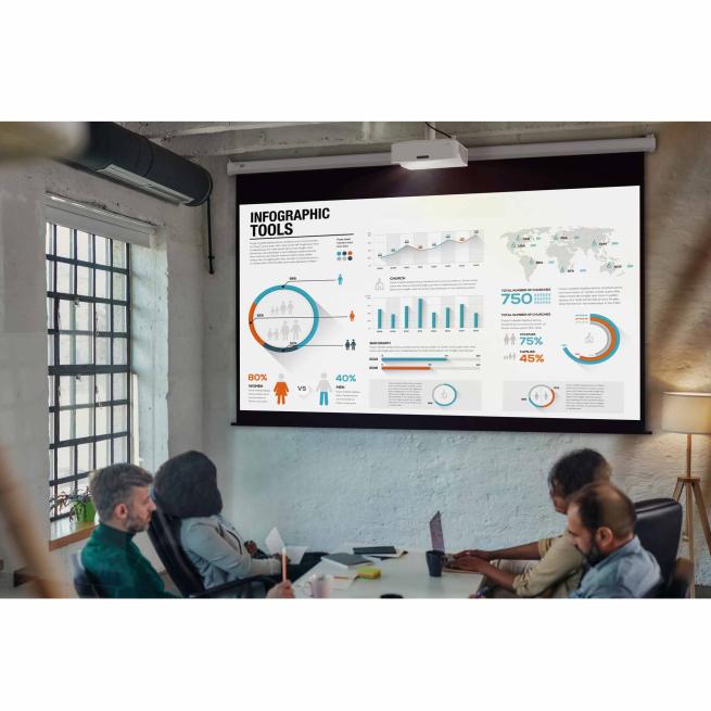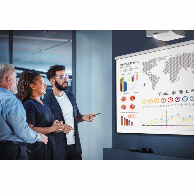 Mit seinem Ultrakurzdistanz-Objektiv projiziert der ZW410UST ein 100-Zoll-Bild aus weniger als 0,5 Metern Entfernung. So lässt sich der Projektor vorne im Klassenzimmer installieren, ohne dass Personen Schatten auf die Leinwand werfen. Die hohe Helligkeit und lebendigen Farben sorgen für klare und ansprechende Präsentationen, die das Lernen unterstützen.