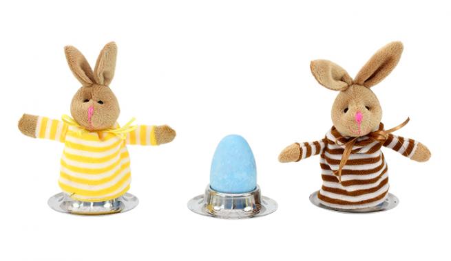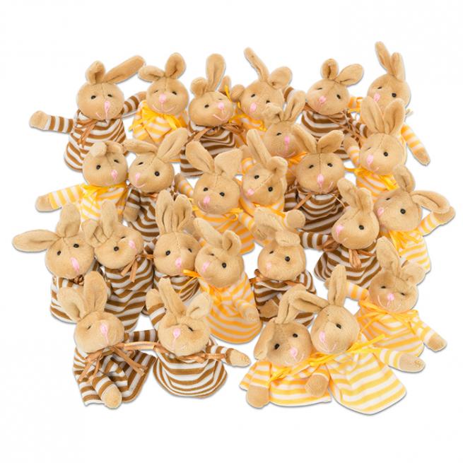 Die niedlichen Plüschhasen sind ein schönes Ostergeschenk. Und unter ihrem Bauch ist genügend Platz, um ein Osterei darunter zu verbergen. Gemischt in Braun und Gelb.