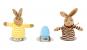 Sehen sehr witzig aus. Als kleine Geschenke zu Ostern. Nachbarin berichtete, dass ihre Katze ein Osterhasen-Eierwärmer "entführte" und dann damit spielte. Mit Watte o.ä. ausgestopft auch als Püppchen verwendbar.