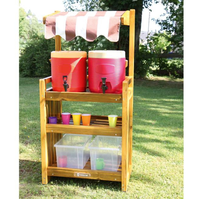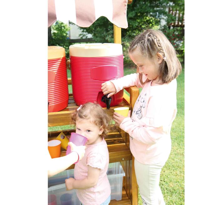 Reichlich Platz für zwei große Getränkespender (nicht enthalten), viele Becher und Tassen (nicht enthalten) bietet die Outdoor-Getränkestation. Unter dem witterungsbeständigen Stoffdach stehen die Behälter gut im Schatten. Zwei Tabletts sind inbegriffen. Zur einfachen Selbstmontage. 5 Jahre Herstellergarantie.