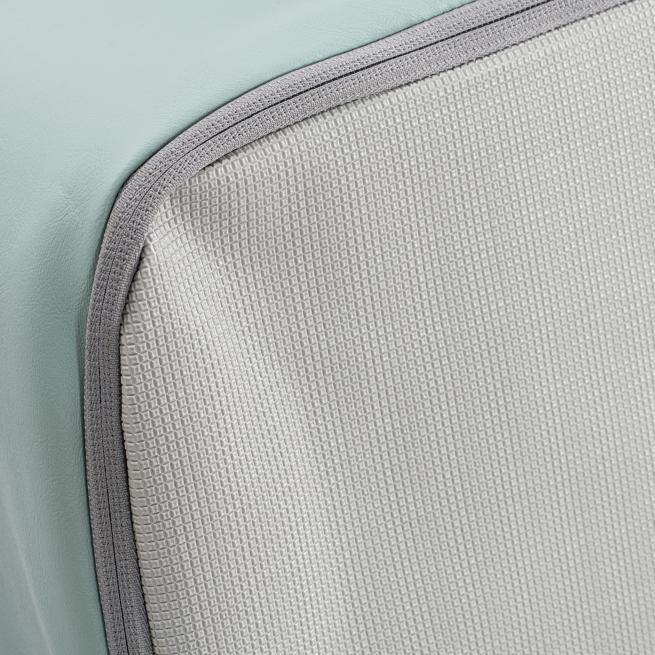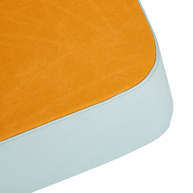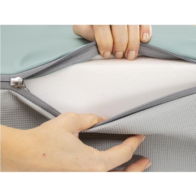 - Bezug oben: 100 % Polyolefin mit wasserdichter Rückseite aus 100 % Polyurethan<br/>Bezug seitlich: Kunstleder: 100 % Polyester mit Beschichtung Polychlorid<br/>Unterseite: Turnmattenstoff 65 % Polychlorid, 35 % Polyester