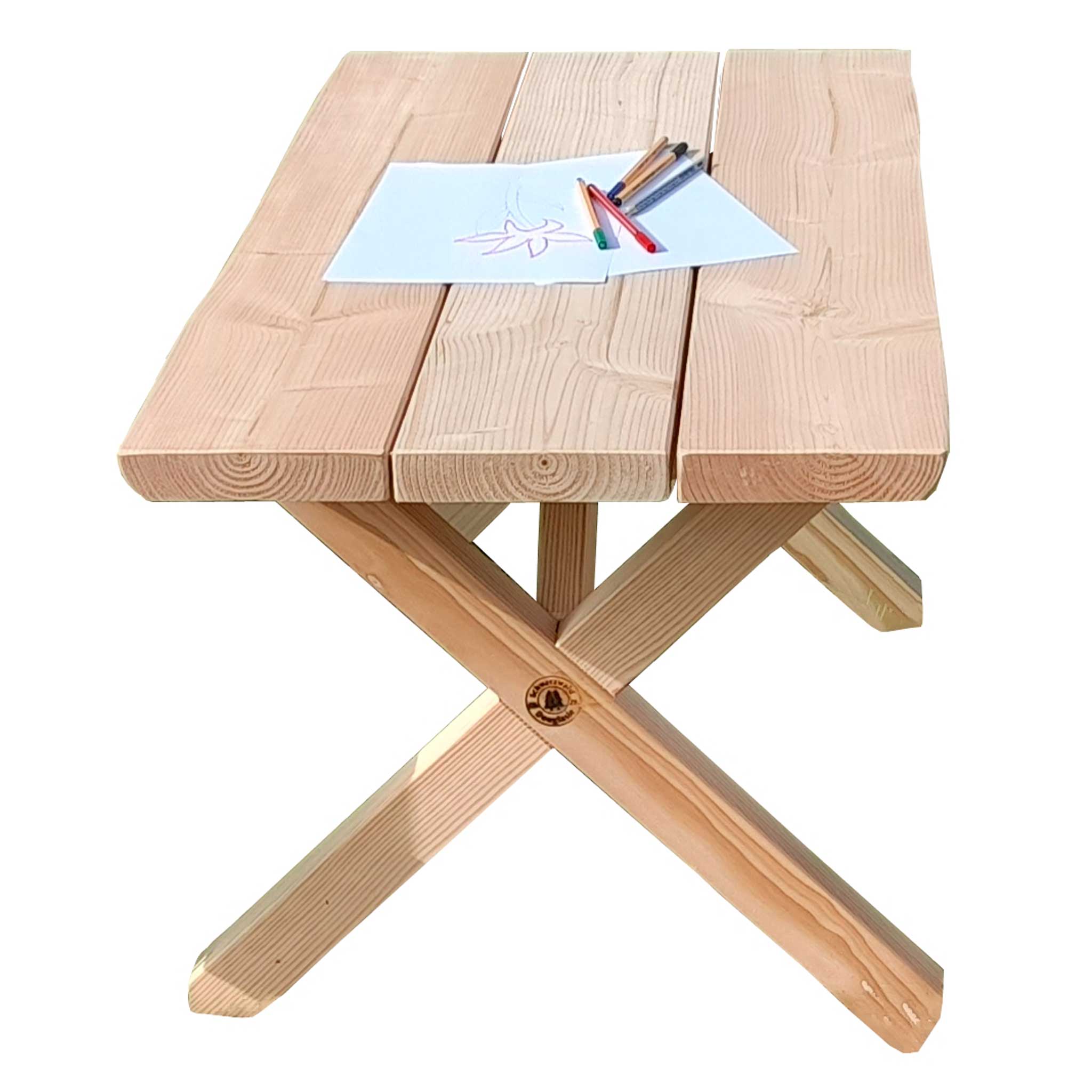 Ein echter Blickfang in Ihrem Außenbereich! Der Tisch aus heimischer Douglasie überzeugt durch hervorragende Verarbeitung. Die äußerst stabile Bauweise sorgt für perfekte Standfestigkeit. Mit ihrer individuellen rötlichen Holzfärbung, die mit der Zeit silbergrau wird, ist jede Sitzgruppe ein attraktives Unikat. Für Kinder von 3 bis 6 Jahren.