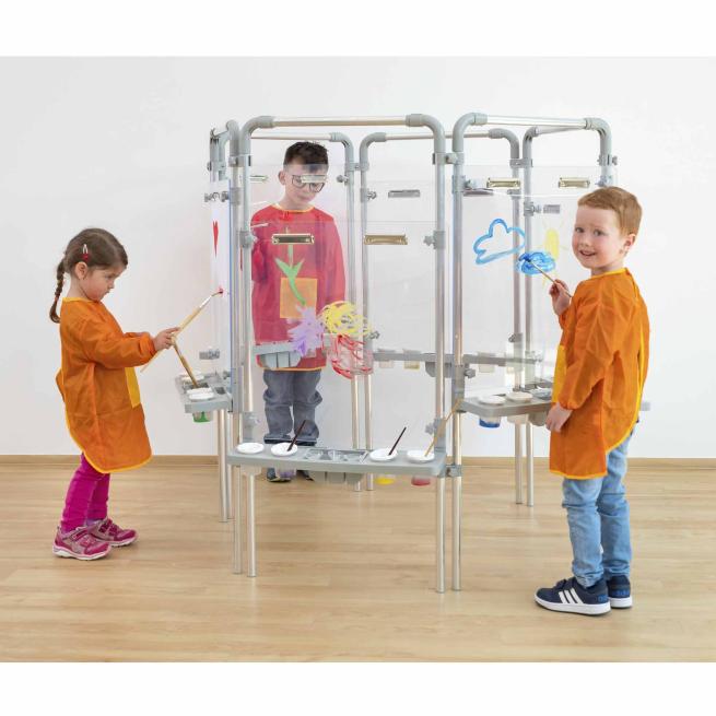 Egal ob drinnen oder draußen, die transparenten Malwände werden direkt bemalt und leicht wieder abgewischt. Jede Malwand hat