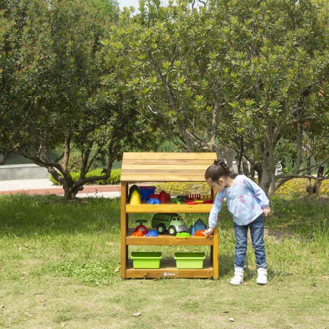 Die 3 Regalfächer mit einer Höhe von je 20 cm (oberstes Fach teils höher) bieten viel Platz für Spielsachen, Outdoorutensilien und vieles mehr. Mit 101 cm Gesamthöhe besitzt das Regal die ideale Kindergröße. Die Kids haben so die Möglichkeit, ihre Spielsachen selbst aus dem Regal zu holen und auch wieder wegzuräumen. Das fördert das selbstständige Handeln und stärkt so zugleich das Selbstvertrauen.
