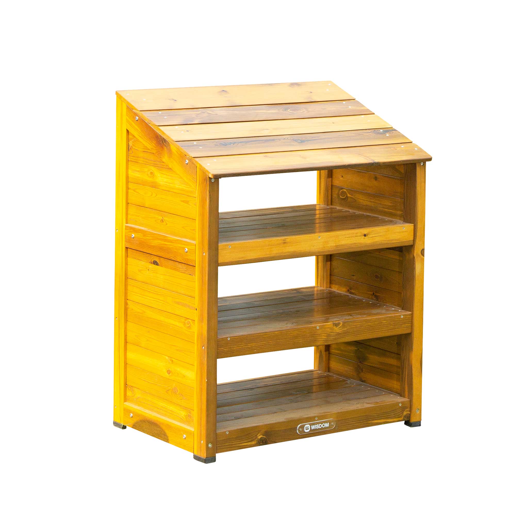 Dank der offenen Rückseite sind die Regale prima zu größeren Installationen kombinierbar. Gefertigt aus kesseldruckimprägniertem Kiefernholz, versehen mit 2-facher Holzöl-Wachs-Lasur – extrem haltbar und witterungsbeständig. Jeder einzelne Regalboden ist bis 20 kg belastbar. Alle 3 Regalfächer zusammen tragen daher eine Maximallast von 60 kg.