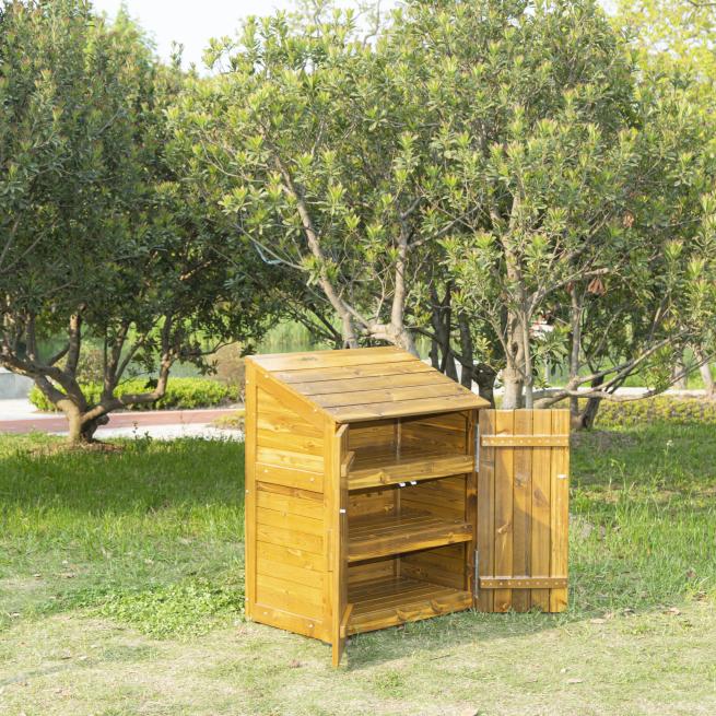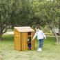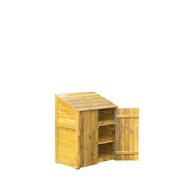 Der Schrank ist robust aus kesseldruckimprägniertem Kiefernholz konstruiert und absolut witterungsbeständig dank 2-facher Holzöl-Wachs-Lasur. Jedes einzelne Schrankfach lässt sich bis 20 kg belasten. Alle 3 Fächer zusammen tragen daher eine Maximallast von 60 kg.