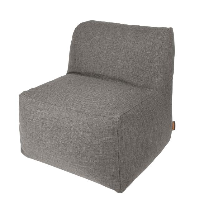 Quadratischer Einzelsessel mit Lehne. Der Outdoor-Sitzsack trotzt allen Wetterlagen. Der weiche, wetterfeste, UV- und lichtbeständige Outdoor-Stoff Olefin machts möglich. Einlagern entfällt. Mit dem Gartenschlauch leicht zu reinigen. Durch spezielle Schnitte und Nähverfahren bleibt auch das Innere des Sitzelements trocken. Die Füllung aus Recyclingmaterial passt sich jeder Körperform an und wirkt isolierend. Bezug mit Reißverschluss.