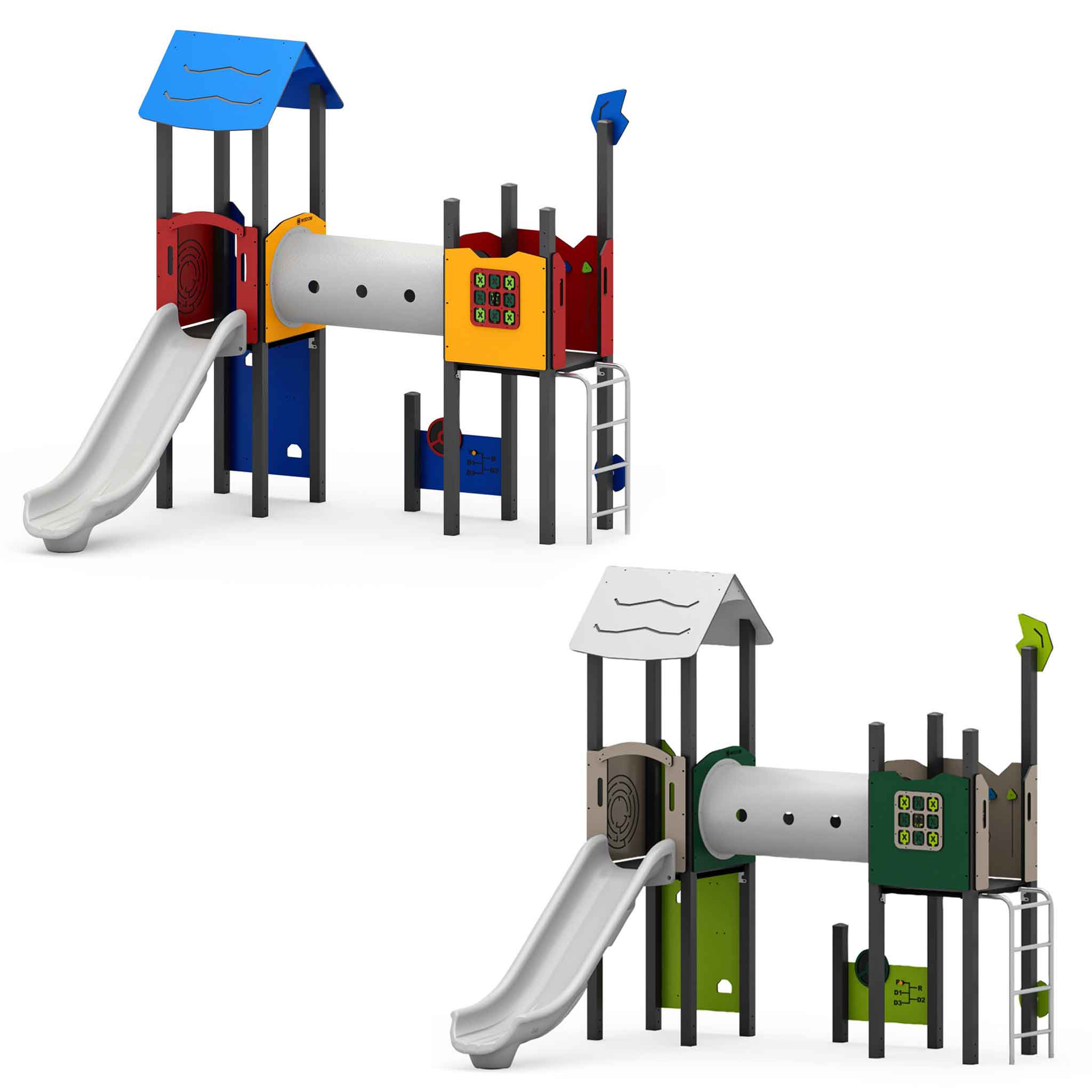 Die Spielanlage ist in den Farbkombinationen Bunt oder Natur erhältlich.