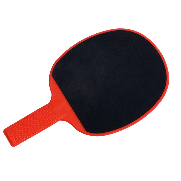 Wetterfester Schläger aus Kunststoff, bestens geeignet für den Einsatz im Freien. Die gummierten Spielflächen sorgen für gute Ballkontrolle, der geriffelte Griff für rutschfesten Halt.