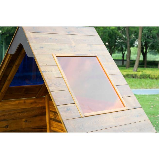 Die Outdoor-Wanderhütte sieht überzeugend schick aus und vermittelt den Kindern eine fantasievolle Umgebung zum Spielen und Träumen. Die bunten Polycarbonat-Fenster tauchen das Innere in herrliche Farben und auch die Außenwelt erscheint in faszinierend neuer Perspektive. Noch dazu ist das Häuschen zugleich ein regenfester Unterschlupf: Dank der witterungsbeständigen Konstruktion aus kesseldruckimprägniertem und schonend lasiertem Kiefernholz ist die Hütte hervorragend für die Aufstellung im Außenbereich Ihrer Kita geeignet.