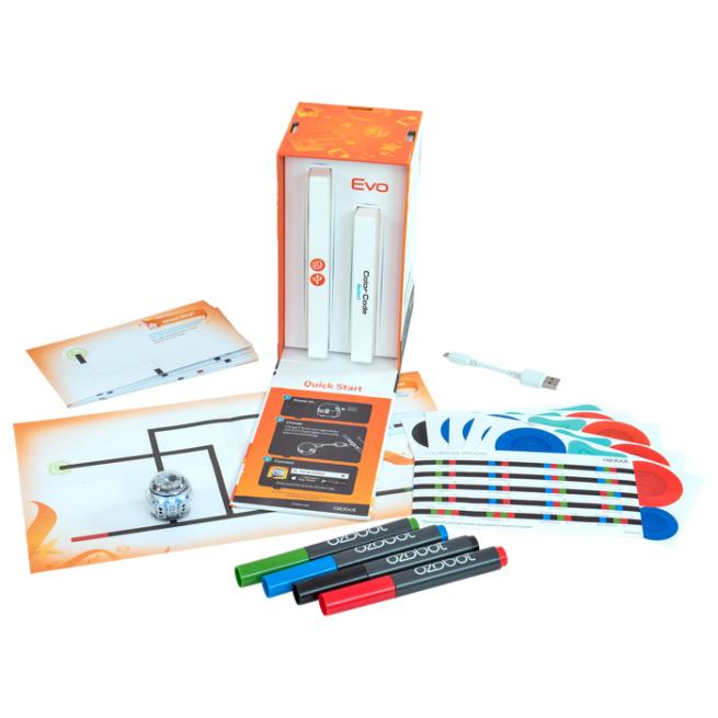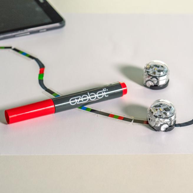 Mit dem Ozobot-Evo gelingt der Einstieg in die digitale Welt so einfach wie noch nie. Kinder zeichnen Linien mit den Filzstiften auf Papier. Der kleine Lernroboter erkennt diese und folgt ihnen. Mit verschiedenen Farben entstehen erste Farbcodes, die für den Ozobot immer ein anderes Manöver bedeuten. Die vielen Infrarotsensoren, LED-Lichter und ein Lautsprecher machen die ersten Programmierungen mit Farbcodes zu einem spielerischen und unverwechselbaren Vergnügen.