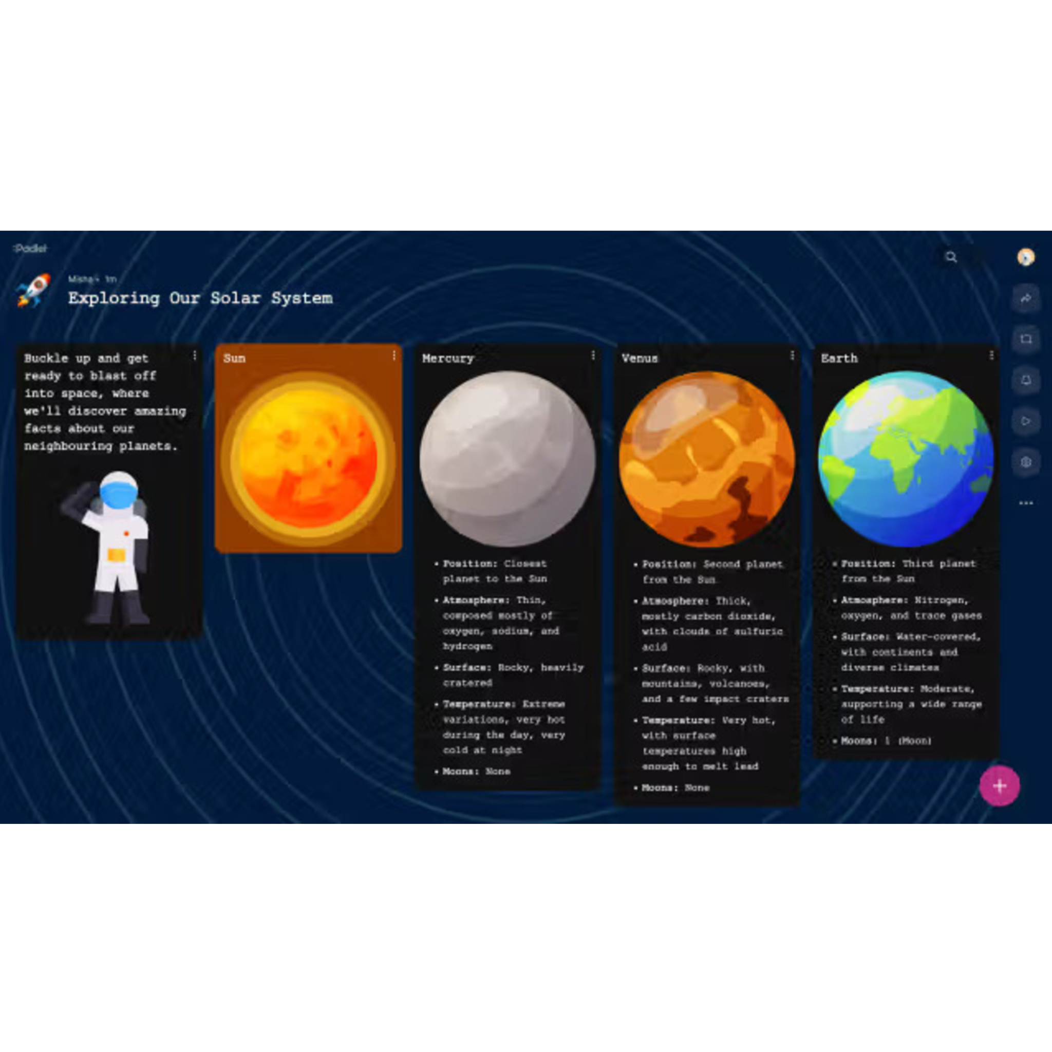 Padlet ist virtuelle Schultafel, interaktive Whiteboardfläche und Leinwand in einem. Erschaffen Sie einzigartige Lerninhalte und arbeiten Sie mit anderen Lehrkräften zusammen. Teilen Sie Ihre Padlets per QR-Code, Link oder Export-PDF. Binden Sie Ihre SuS aktiv ein und lassen Sie sie selbst kreative Inhalte beisteuern. Übersichtliche Menüs, intuitive Tools, das Arbeiten mit wenigen Mausklicks oder per Drag-and-Drop machen alles sehr einfach. Sie und Ihre SuS finden sich schnell zurecht und benötigen nahezu keine Vorkenntnisse. Dabei behalten Sie stets die Kontrolle: Sie moderieren, erteilen Freigaben und entscheiden mithilfe individueller Privatsphäre-Einstellungen jederzeit selbst, für wen Ihre Padlets und deren Inhalte sichtbar und auf welche Weise zugänglich sind.