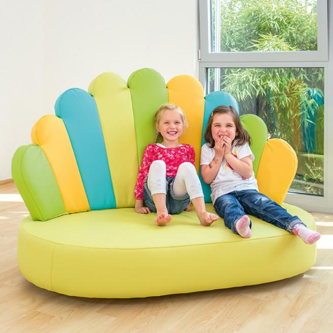 Das prächtige Pfauensofa mit seinem farbigen Streifendesign wird für Ihre Kleinen sicher schnell zum Lieblingsplatz. Gut, dass auf der bequemen Sitzfläche leicht mehrere Kinder Platz haben. Pflegeleichte Materialien und hochwertige Verarbeitung sorgen dafür, dass Ihre Kleinen lange viel Freude an ihrem Pfauensofa haben.