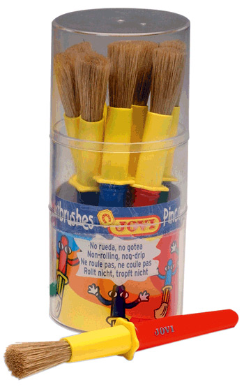 Diese Pinsel verhindern den Farbrücklauf, wenn Kinder den Pinsel umdrehen und hochhalten. Die Pinsel sind aus Kunststoff mit starken Borsten.