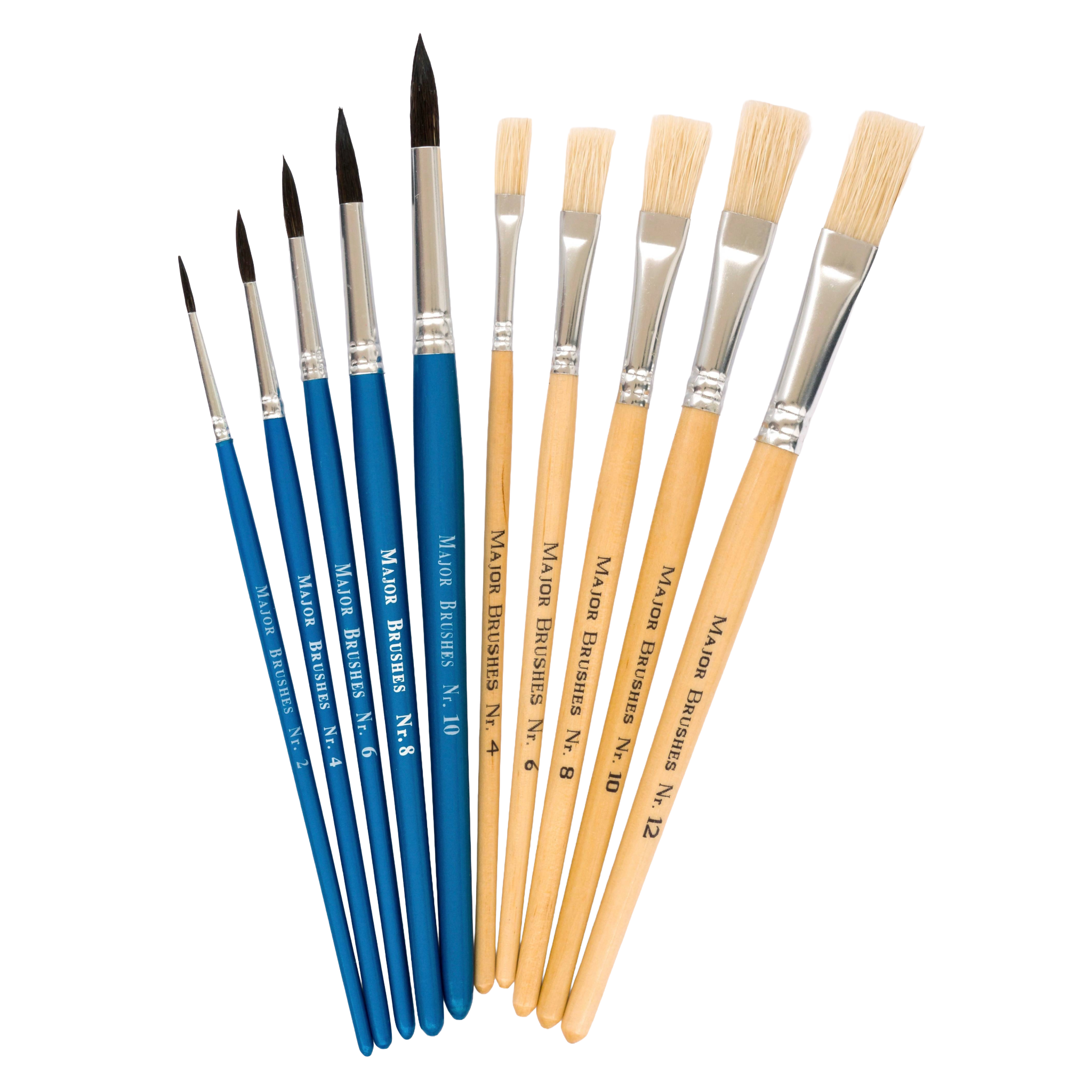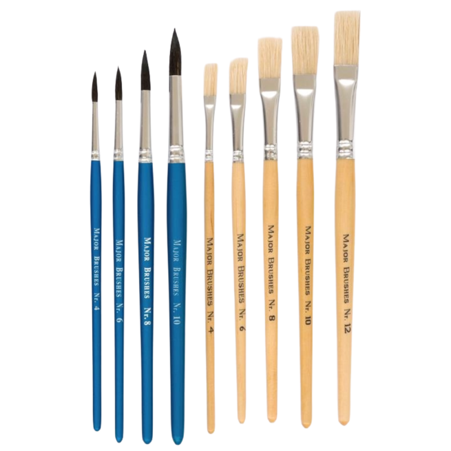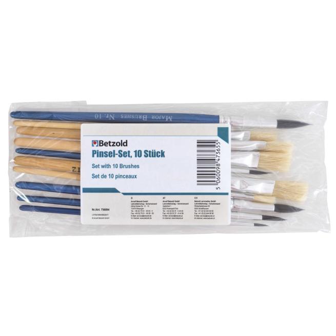 • praktischer Mix: 5 unterschiedlich breite Borstenpinsel + 5 unterschiedlich große Haarpinsel