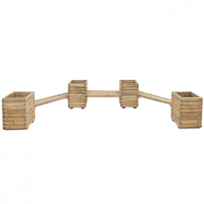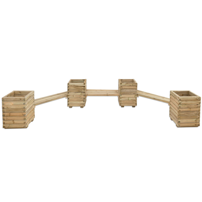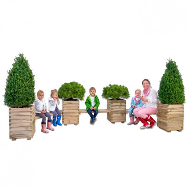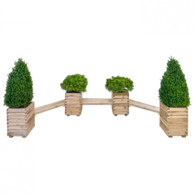 Verwandeln Sie Ihren Außenbereich mit diesen Sitzgelegenheiten im Nu in einen gemütlichen Erholungsort. Die Planta Kombination aus Holzbänken und Pflanzkübeln eignet sich optimal für Sitzkreise und Treffen im Freien. Holz harmoniert wunderschön mit üppig bepflanzten Blumenkübeln und fügt sich perfekt in die Umgebung ein – sowohl in- als auch outdoor. In Innenräumen setzen Sie naturnahe Akzente. Die Elemente sind individuell kombinierbar. Auch die Sitzhöhe bestimmen Sie durch einfaches Anschrauben an die Pflanzgefäße selbst. Die integrierten Pflanzkübel bepflanzen Sie ganz nach Lust und Laune. Eine stabile Folie zum Auskleiden der Kübel, damit Ihre Pflanzen gut gedeihen ist im Set enthalten. Aus Kiefernholz, kesseldruckimprägniert.