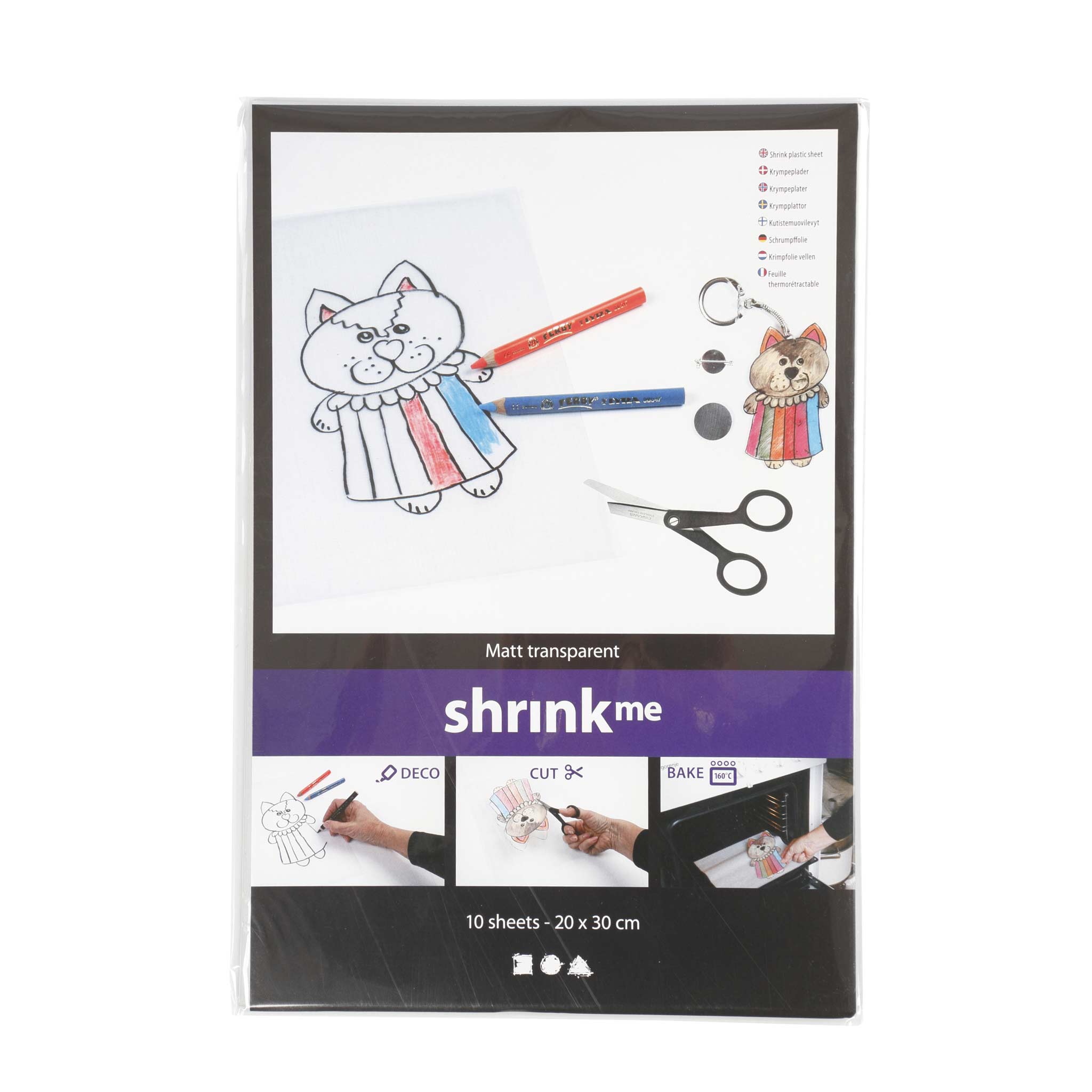 Die transparenten Schrumpffolien bringen echte Überraschungen auf den Basteltisch. Kinder zeichnen Vorlagen direkt nach, gestalten eigene Motive und verwandeln ihre Kunstwerke mit den Folien im Backofen in kleine Schmuckstücke und Dekorationen. Die fertigen Schrumpfobjekte verkleinern sich um bis zu 40 % ihrer ursprünglichen Größe und passen damit gut für Schmuck, Schlüsselanhänger, Taschenanhänger und persönliche Geschenke. Die Plastikschrumpfplatten eignen sich für kreative Angebote in Kindergarten und Schule. Fantasie, Feinmotorik und genaues Arbeiten sind hier gefragt.